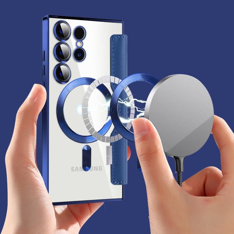 Θήκη κινητού Samsung Galaxy S24 Ultra 5G Shield MagSafe RFID Anti-theft από δέρμα με ρόμβους (Σκούρο Μπλε)