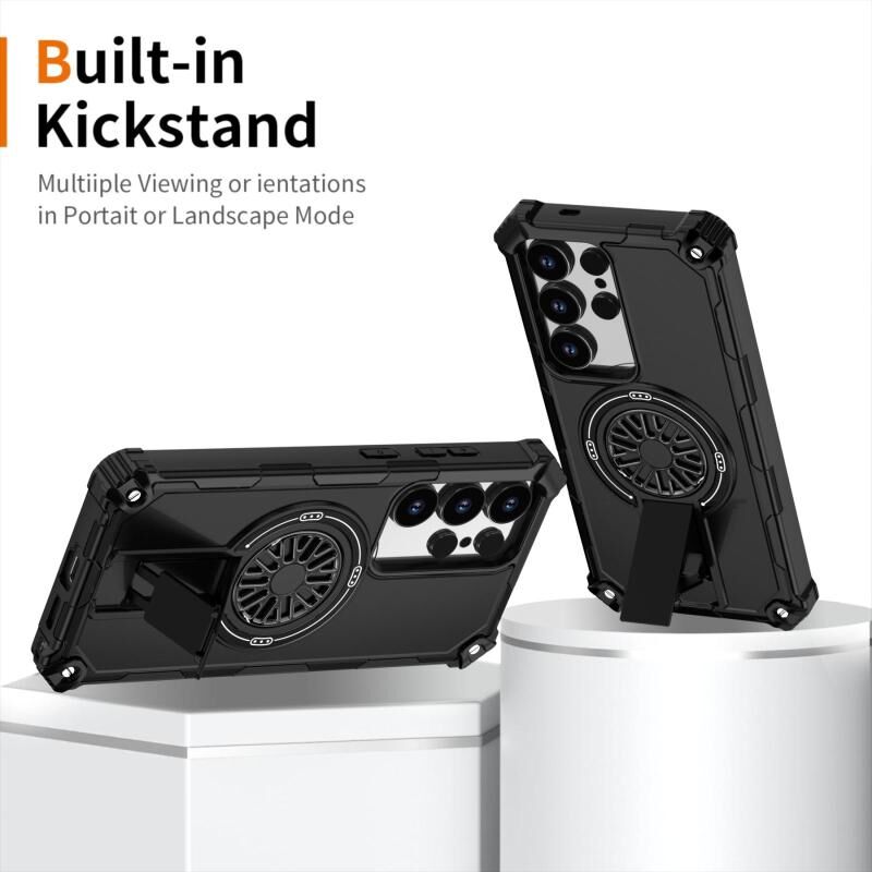 For Samsung Galaxy S24 Ultra 5G Shockproof Kickstand Metallic Shaft MagSafe Phone Case(Black)