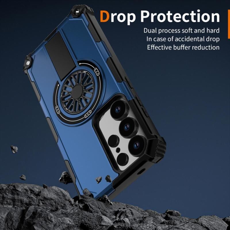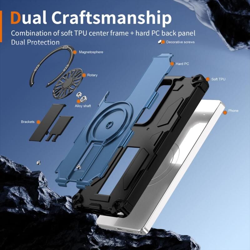 For Samsung Galaxy S24 Ultra 5G Shockproof Kickstand Metallic Shaft MagSafe Phone Case(Blue)