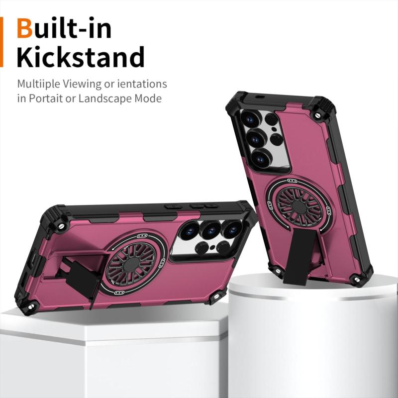 For Samsung Galaxy S24 Ultra 5G Shockproof Kickstand Metallic Shaft MagSafe Phone Case(Purple)