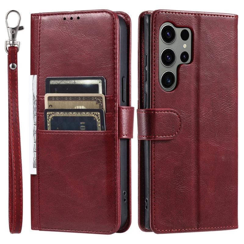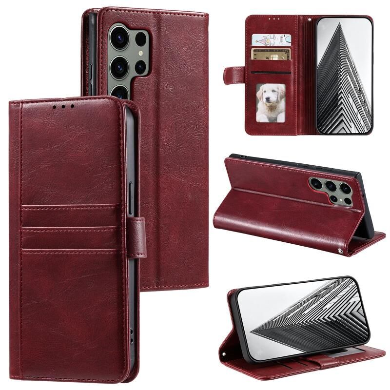 Για Samsung Galaxy S24 Ultra 5G Απλή 6-Card πορτοφόλι δερμάτινη θήκη τηλεφώνου (κόκκινο κρασί)