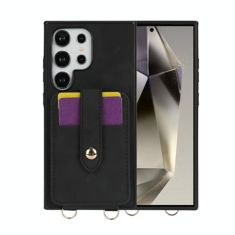 Για Samsung Galaxy S24 Ultra 5G δέρμα κάρτα τσάντα τσάντα Crossbody Lanyard τηλέφωνο υπόθεση (Μαύρο)