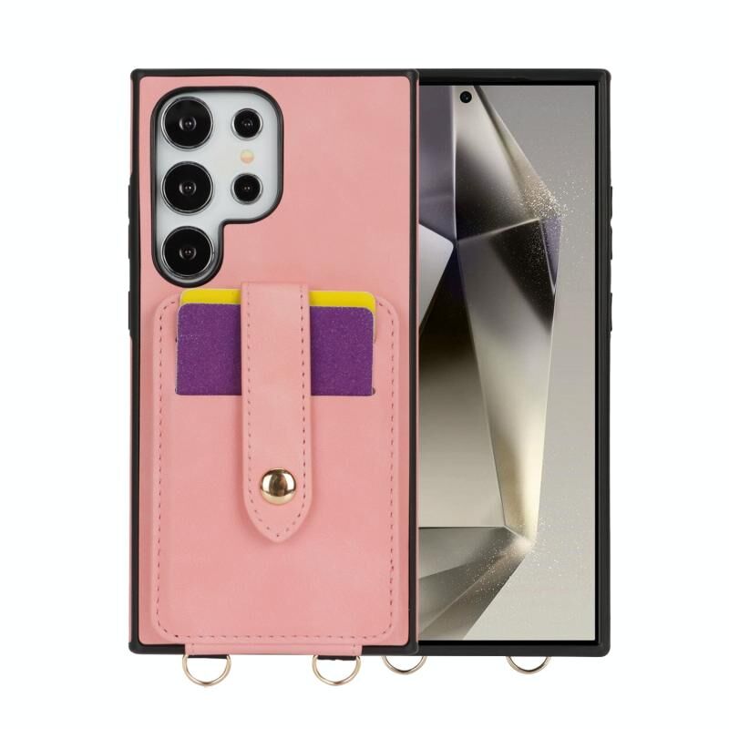 Για Samsung Galaxy S24 Ultra 5G δέρμα κάρτα τσάντα τσάντα Crossbody Lanyard τηλέφωνο υπόθεση (ροζ)