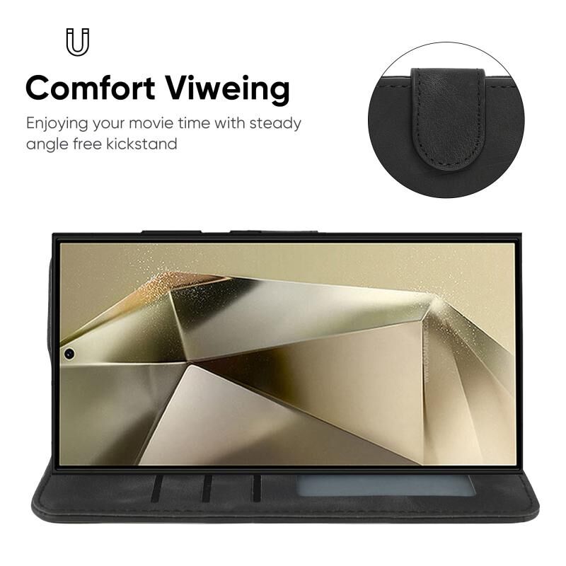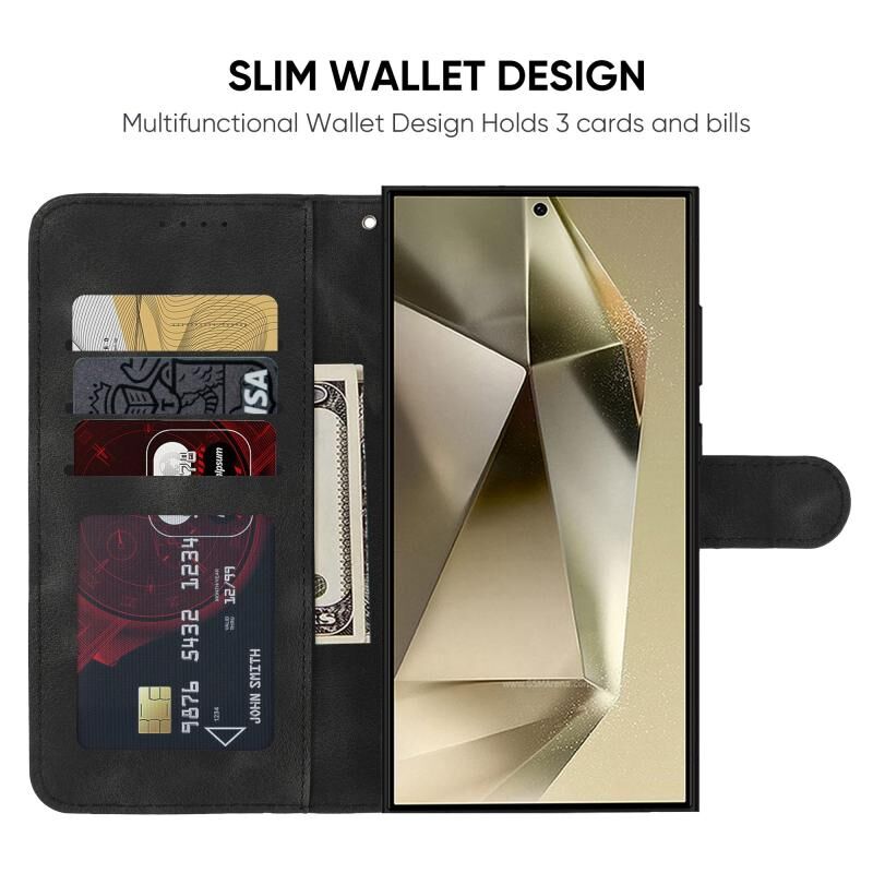 Θήκη τηλεφώνου Samsung Galaxy S24 Ultra 5G με δερμάτινη υφή, γεωμετρικά σχέδια (Μαύρο)