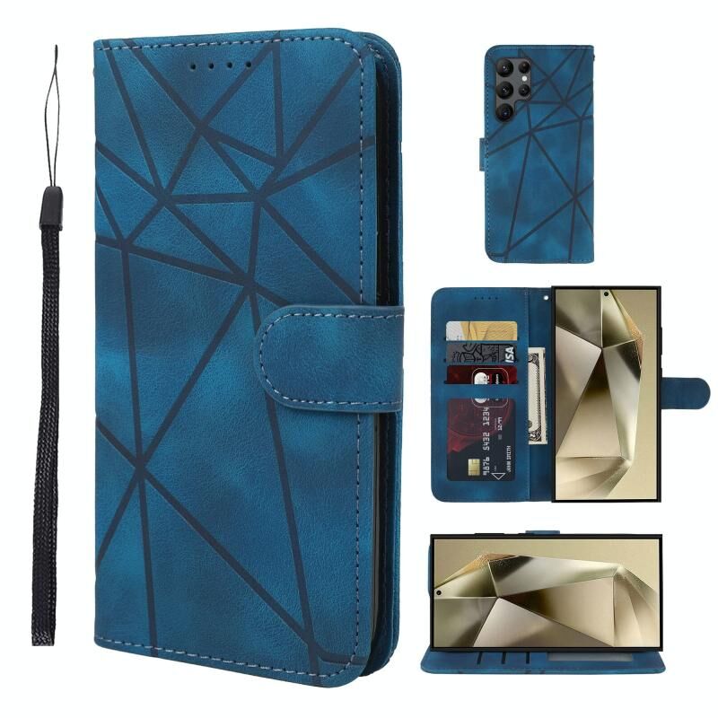 Θήκη τηλεφώνου Samsung Galaxy S24 Ultra 5G με δερμάτινη υφή, γεωμετρικά σχέδια (Μαύρο)