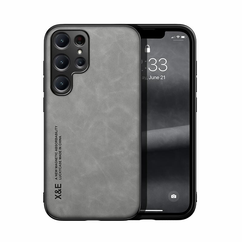 Για Samsung Galaxy S24 Ultra 5G δέρμα αίσθηση μαγνητικό δέρμα πίσω τηλέφωνο υπόθεση (ανοιχτό γκρι)