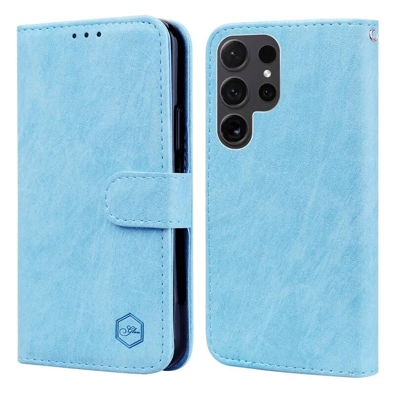 Για Samsung Galaxy S24 Ultra 5G δέρμα αίσθηση πετρελαίου δέρμα υφή PU + TPU τηλέφωνο υπόθεση (γαλάζιο)