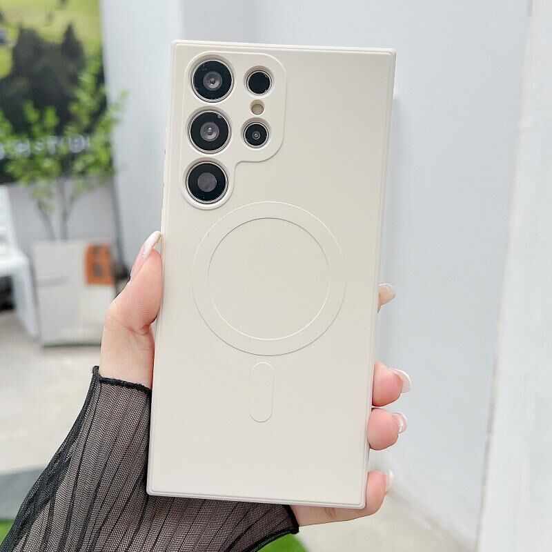 Θήκη τηλεφώνου Samsung Galaxy S24 Ultra 5G, Μαγνητική, Υγρή Σιλικόνη, Μονόχρωμη, Συμβατή με MagSafe (Μωβ Χόρτο)