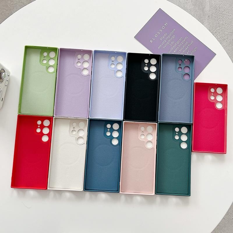 Θήκη τηλεφώνου Samsung Galaxy S24 Ultra 5G, Μαγνητική, Υγρή Σιλικόνη, Μονόχρωμη, Συμβατή με MagSafe (Μωβ Χόρτο)