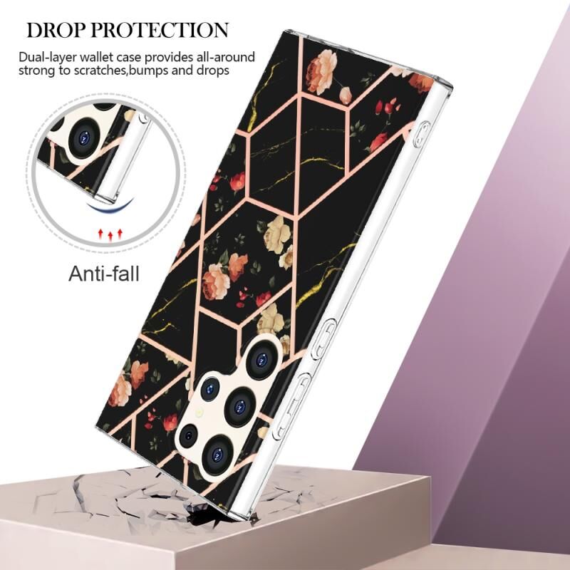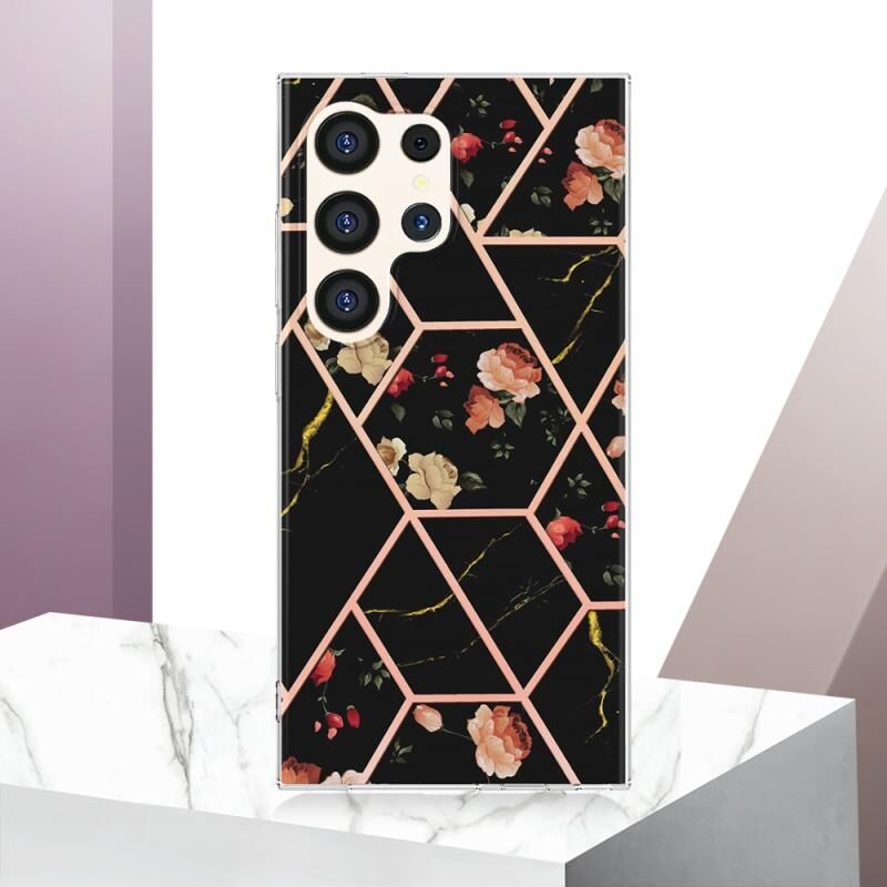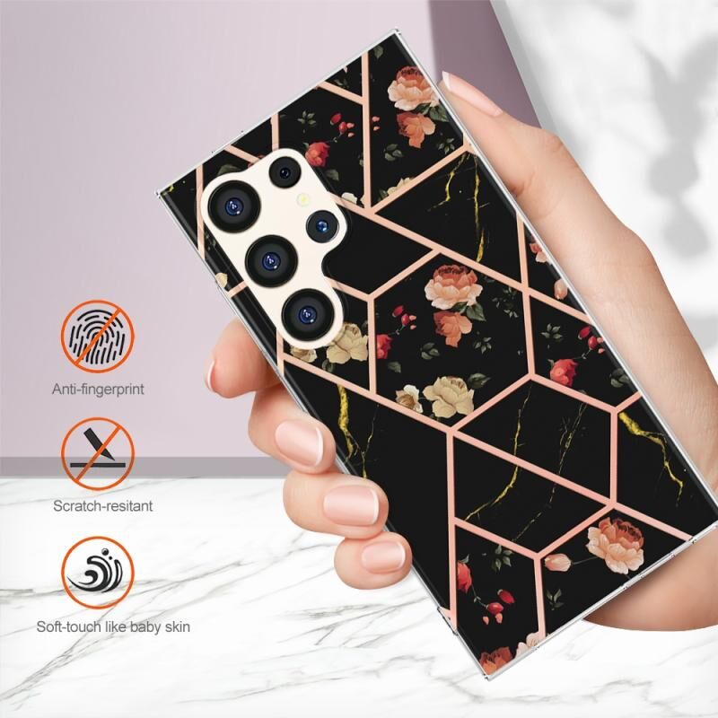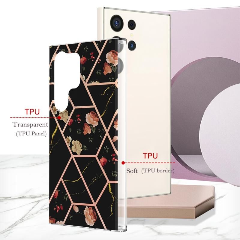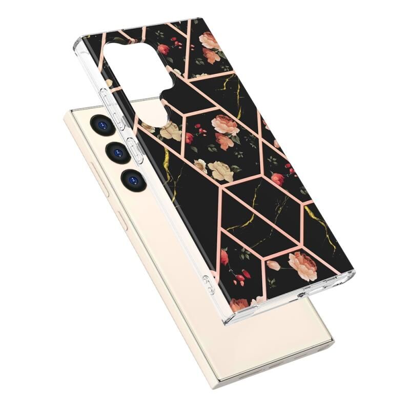 Θήκη κινητού τηλεφώνου Samsung Galaxy S24 Ultra 5G, με σχέδιο μαρμάρου και λουλουδιών, IMD TPU (Μαύρο Λουλούδι)