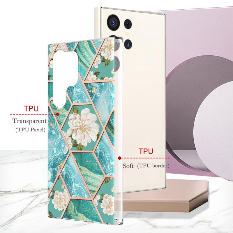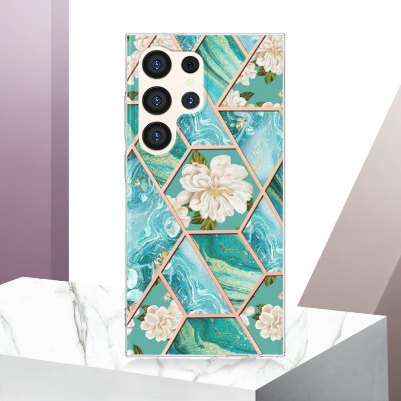 For Samsung Galaxy S24 Ultra 5G Splicing Marble Flower IMD TPU Phone Case(Blue Flower)