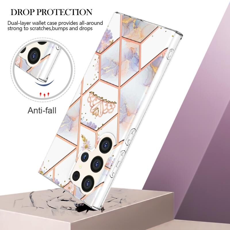 4. Χαριτωμένο και κομψό σχέδιο: Δροσερή και κομψή εμφάνιση με ηλεκτρολυτική επιμετάλλωση IMD με μοτίβο μαρμάρου και λουλουδιών, προστατεύει το τηλέφωνό σας με στυλ.