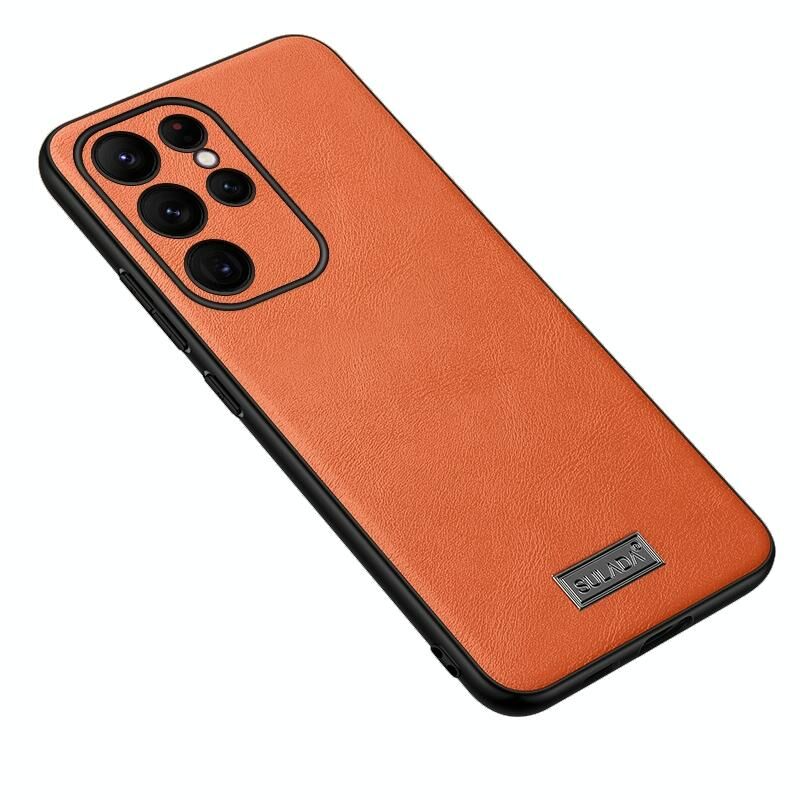 Θήκη κινητού τηλεφώνου Samsung Galaxy S24 Ultra 5G SULADA αντικραδασμική υβριδική TPU χειροποίητη δερμάτινη (Καφέ) (Πορτοκαλί)