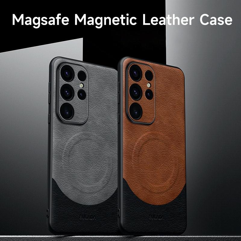 For Samsung Galaxy S24 Ultra 5G SULADA Stitching Leather MagSafe Magnetic Phone Case(Grey) (SULADA)