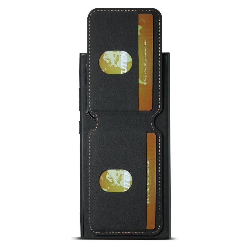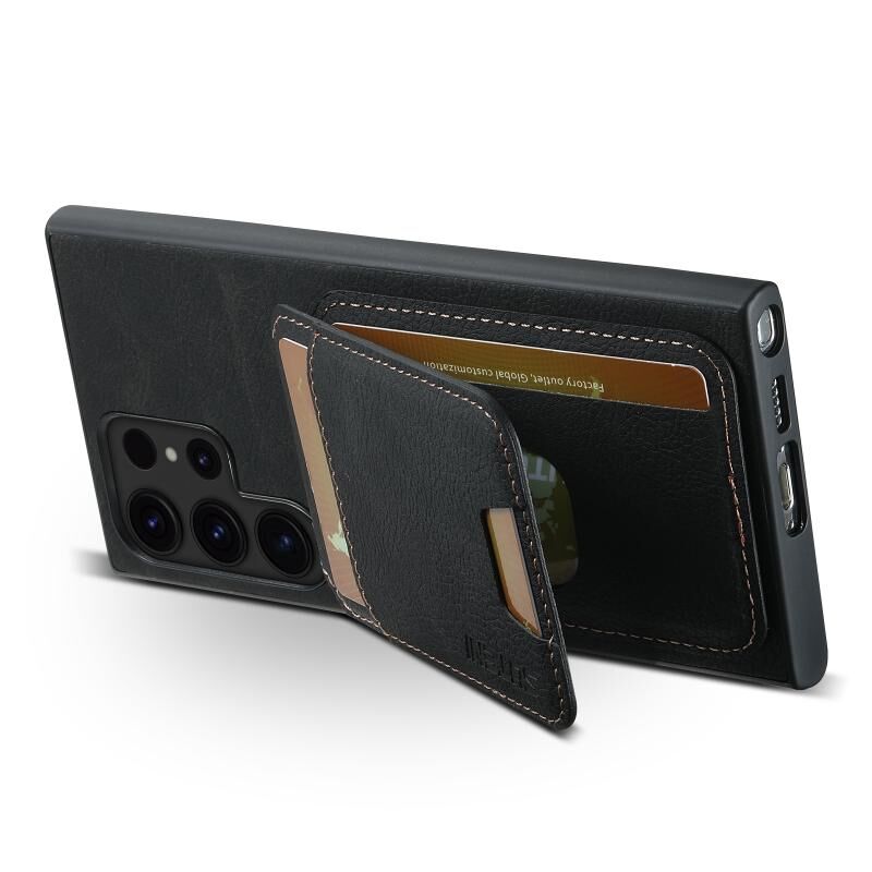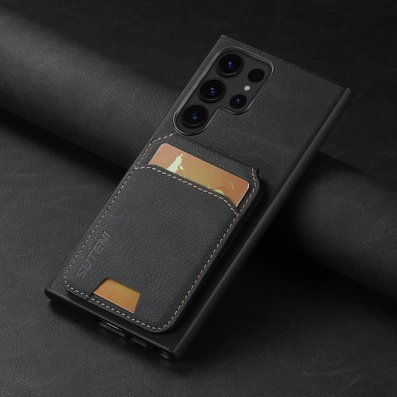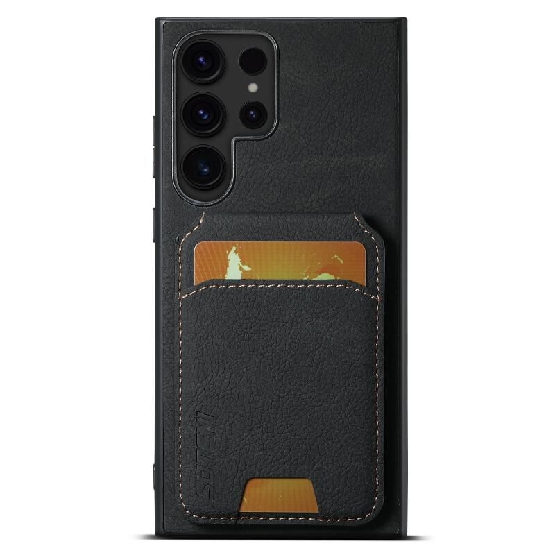 Θήκη κινητού τηλεφώνου Suteni H02 από δέρμα Litchi με κάρτες και βάση για Samsung Galaxy S24 Ultra 5G (Μαύρο) (Suteni)