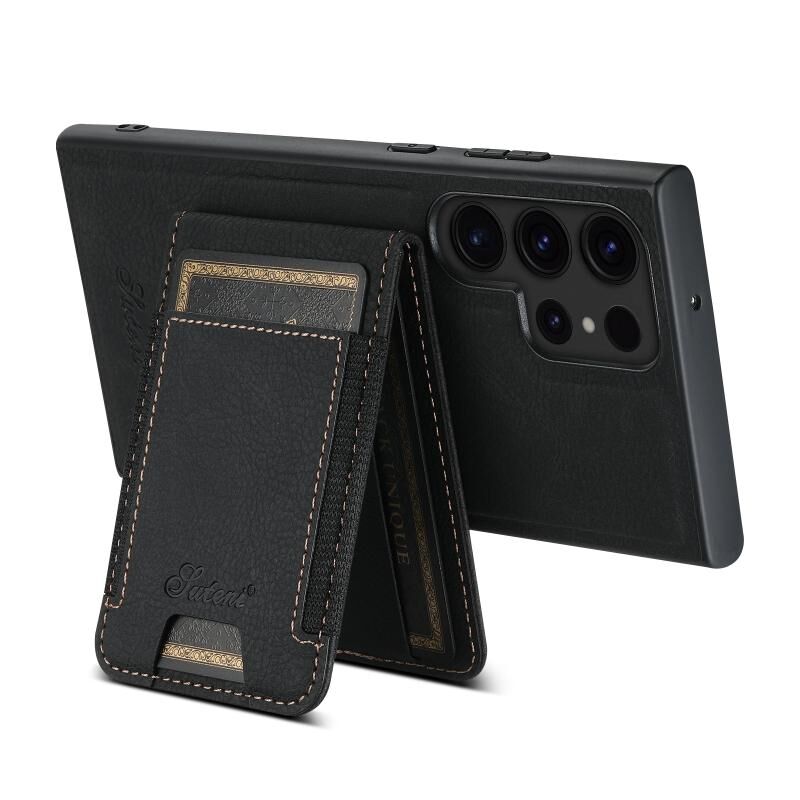 For Samsung Galaxy S24 Ultra 5G Suteni H17 Litchi Texture Leather MagSafe Detachable Wallet Phone Case(Black) (Suteni)