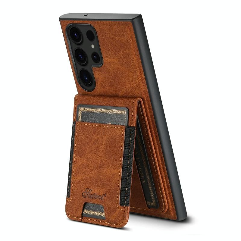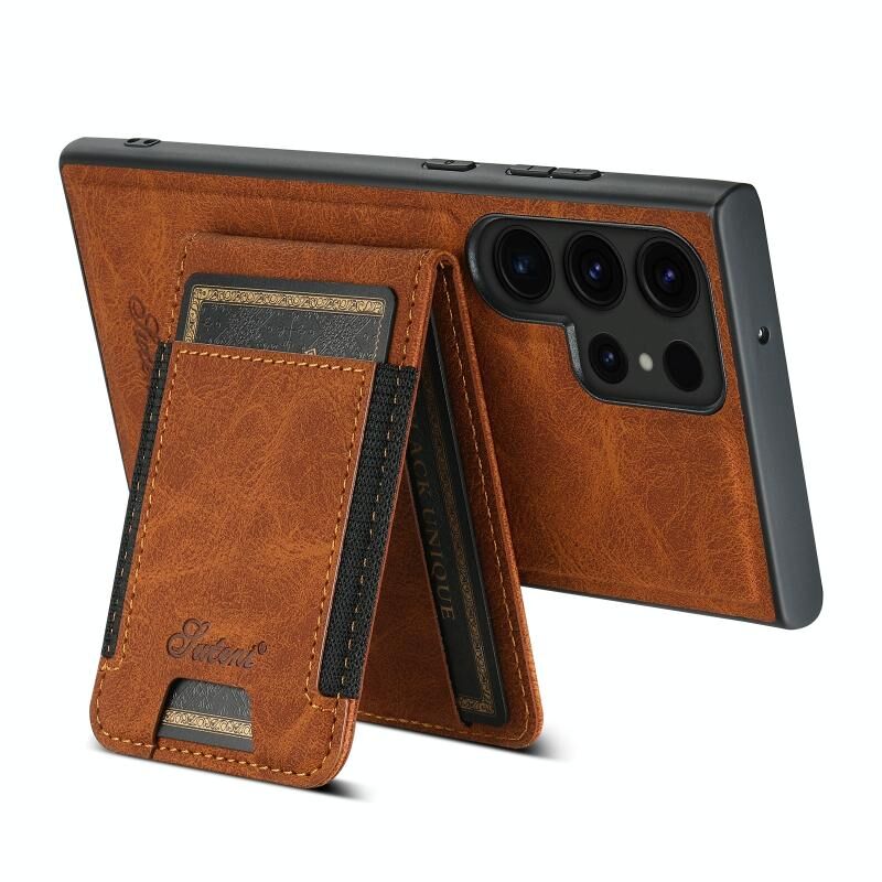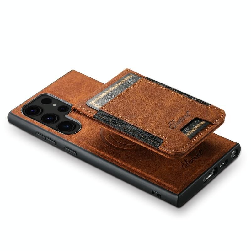 Θήκη τηλεφώνου με αποσπώμενο πορτοφόλι MagSafe από δέρμα με υφή Litchi Suteni H17 για Samsung Galaxy S24 Ultra 5G (Καφέ) (Χακί)