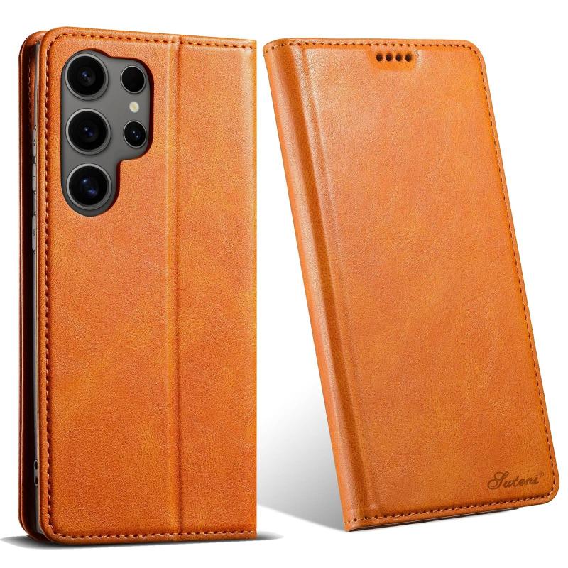 For Samsung Galaxy S24 Ultra 5G Suteni J02 Oil Wax Wallet Leather Phone Case(Khaki) (Suteni)