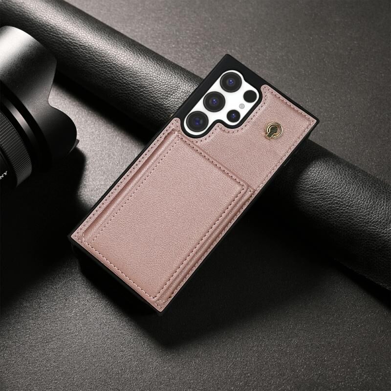 Για Samsung Galaxy S24 Ultra 5G Τρεις φορές κάρτα τσάντα υπόθεση τηλεφώνου με μακρύ κορδόνι (ροζ χρυσό)