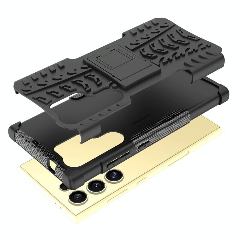 Για Samsung Galaxy S24 Ultra 5G ελαστικών υφή TPU + PC τηλέφωνο υπόθεση με θήκη (μαύρο)