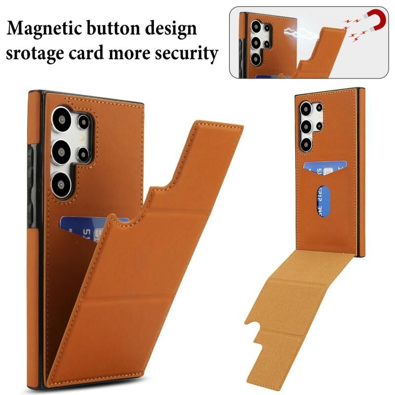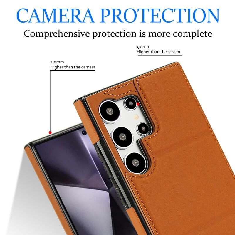 Θήκη τηλεφώνου Samsung Galaxy S24 Ultra 5G δερμάτινη, τριπλή, με θήκη για κάρτες (Χρυσό ροζ)