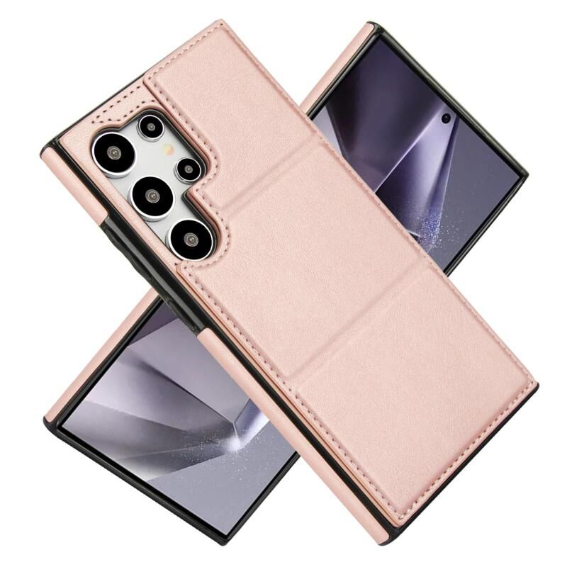 Θήκη τηλεφώνου Samsung Galaxy S24 Ultra 5G δερμάτινη, τριπλή, με θήκη για κάρτες (Χρυσό ροζ)