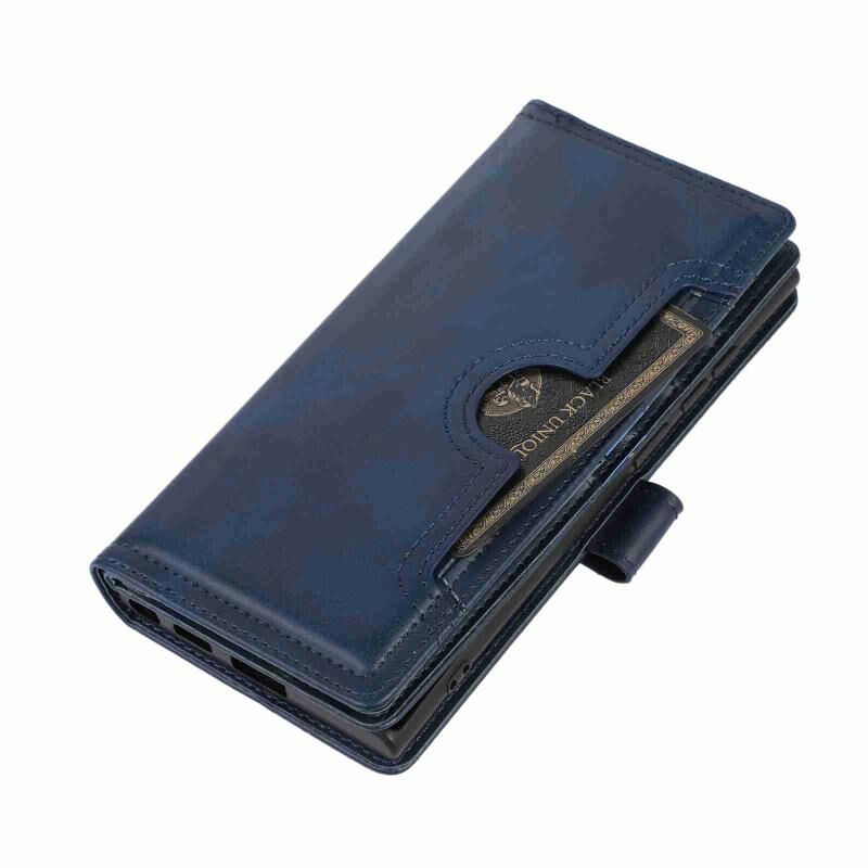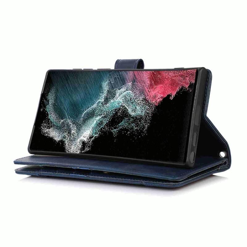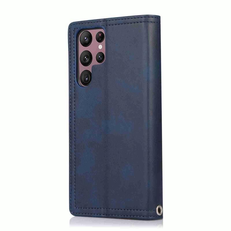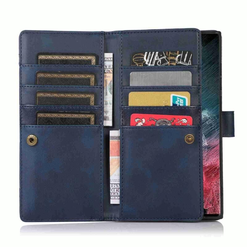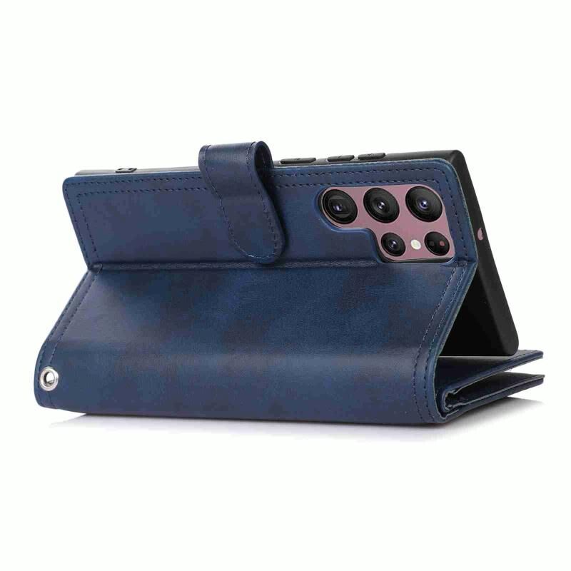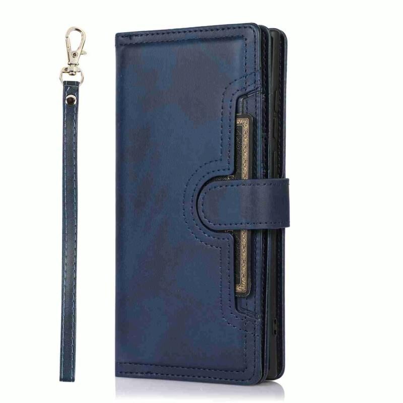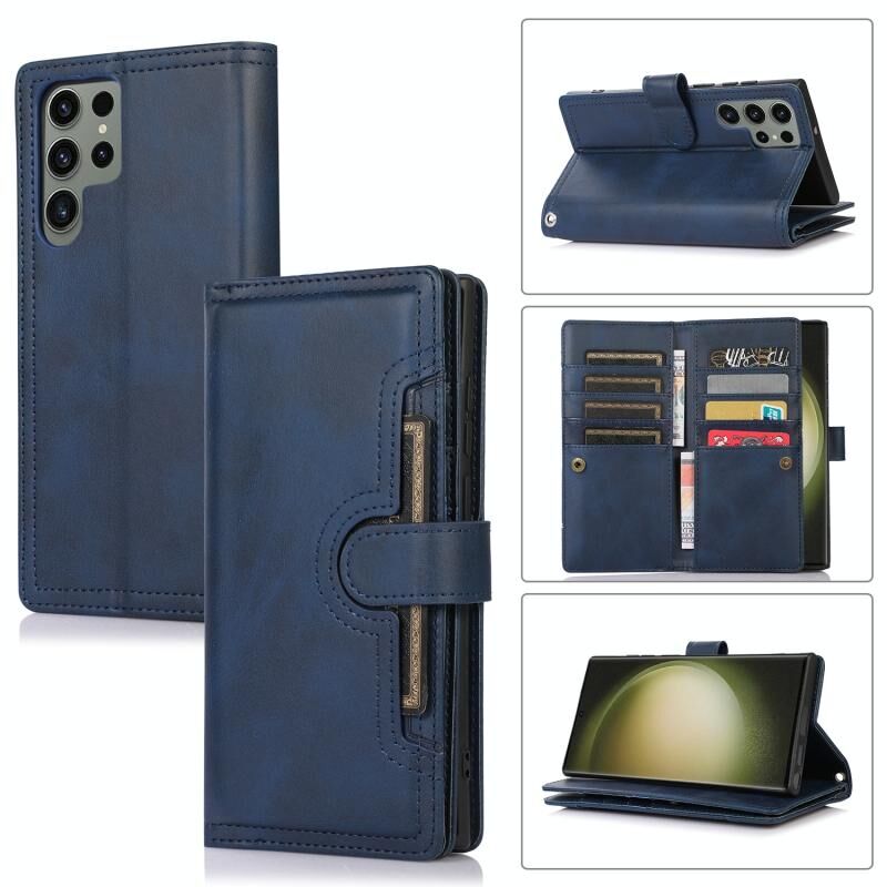 Για Samsung Galaxy S24 Ultra 5G Wristband κάρτα Slot δερμάτινη θήκη τηλεφώνου (Μπλε)