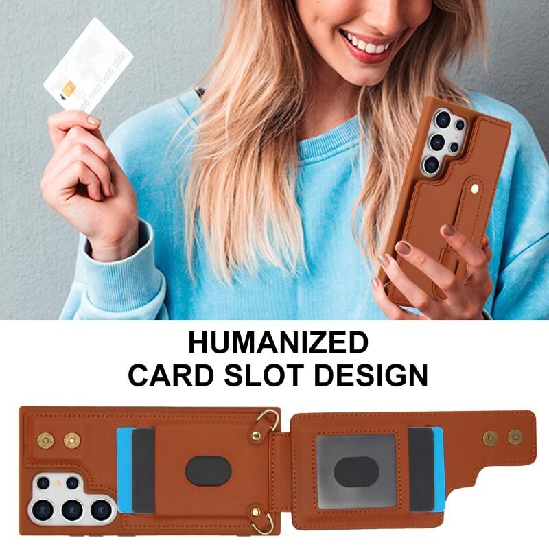 For Samsung Galaxy S24 Ultra 5G Wristband Vertical Flip Wallet Back Cover Phone Case with Long Lanyard(Brown)