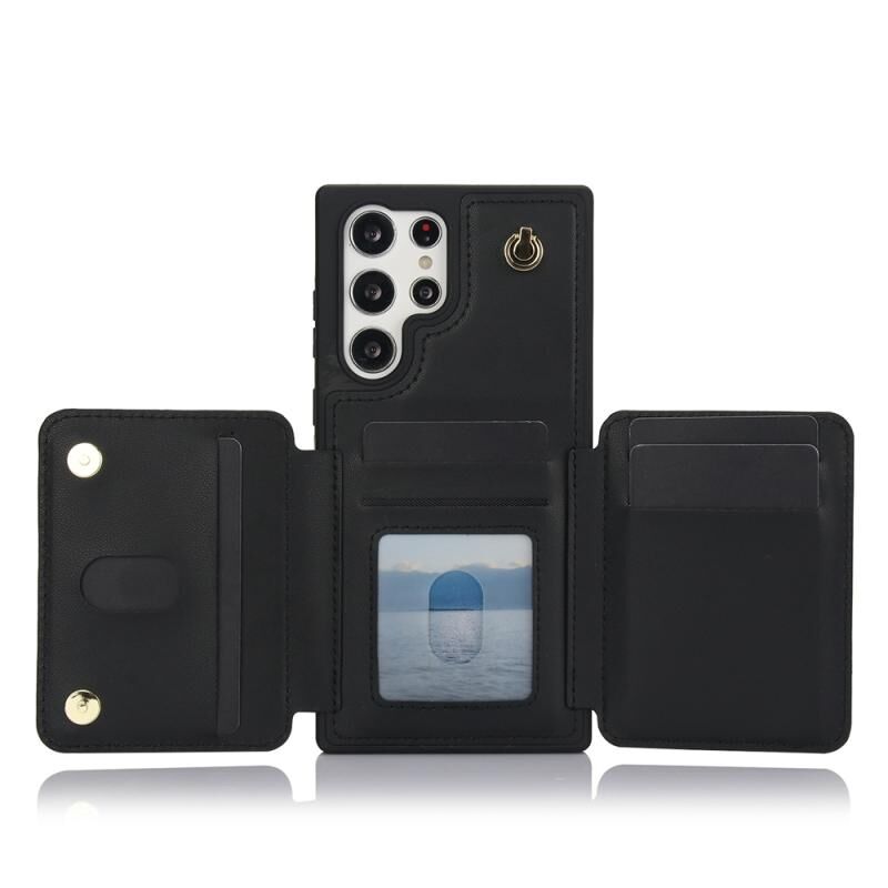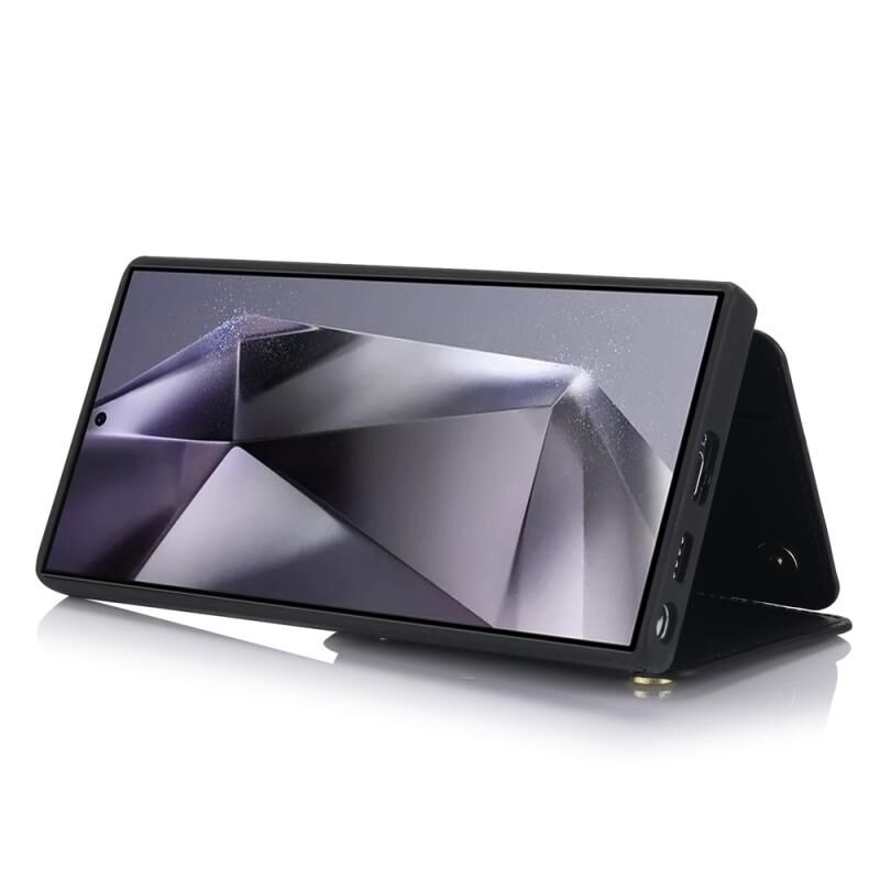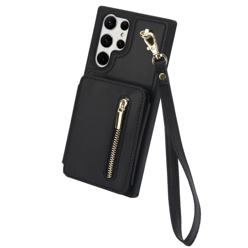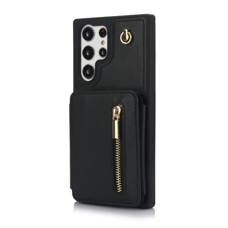 Για Samsung Galaxy S24 Ultra 5G YM006 δέρμα αίσθηση φερμουάρ κάρτα τσάντα υπόθεση τηλεφώνου με διπλό κορδόνι (Μαύρο)