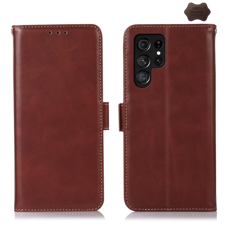 Θήκη τηλεφώνου από δέρμα αγελάδας Top Layer Crazy Horse για Samsung Galaxy S24 Ultra (Καφέ)