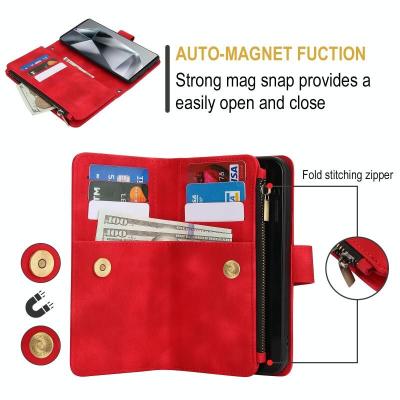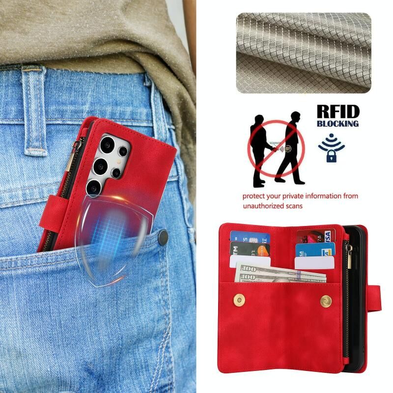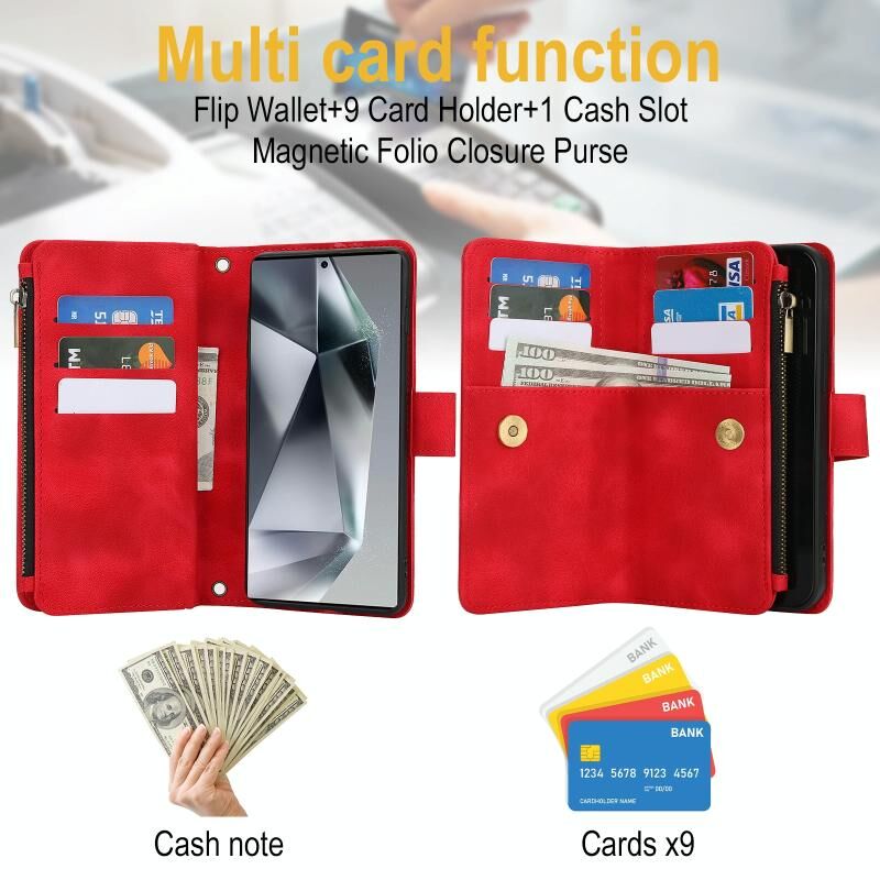 Για Samsung Galaxy S24 Ultra Dream 9-Card φερμουάρ πορτοφόλι RFID Δερμάτινη θήκη τηλεφώνου με κορδόνι (κόκκινο)