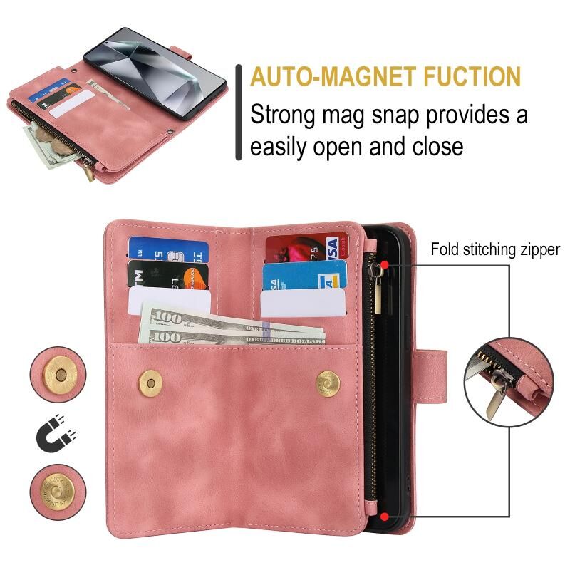 2. Λειτουργία πορτοφολιού πολλαπλών καρτών: 9 υποδοχές για κάρτες και 1 θήκη μετρητών με φερμουάρ για να αποθηκεύετε τις πιστωτικές σας κάρτες, μετρητά ή μικρά χαρτονομίσματα για τις καθημερινές σας ανάγκες.