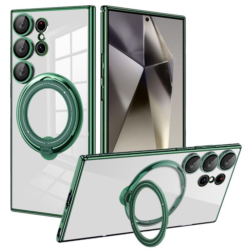 Θήκη κινητού τηλεφώνου με ηλεκτρολυτική επίστρωση MagSafe, περιστροφή 360 μοιρών, αντικραδασμική για Samsung Galaxy S24 Ultra (Μαύρο)