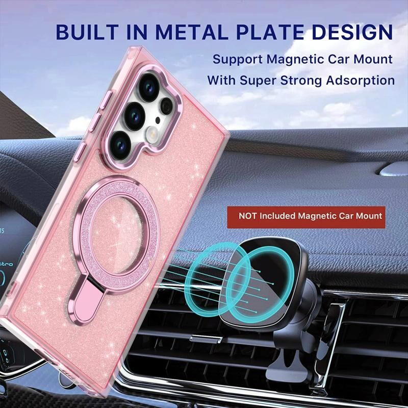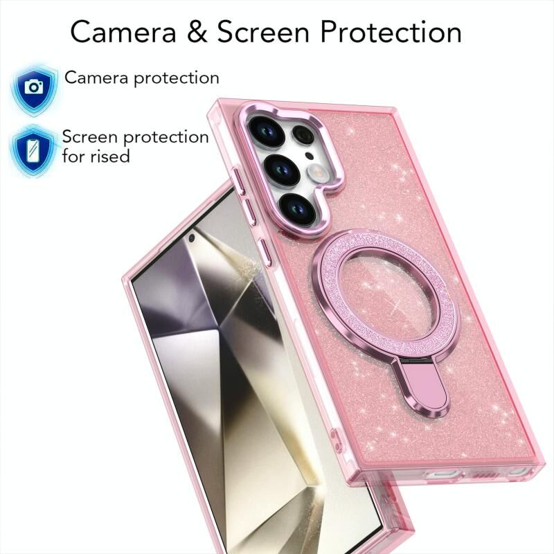 Θήκη τηλεφώνου Samsung Galaxy S24 Ultra με Δαχτυλίδι Glitter και Μαγνητική Στήριξη MagSafe (Ροζ)