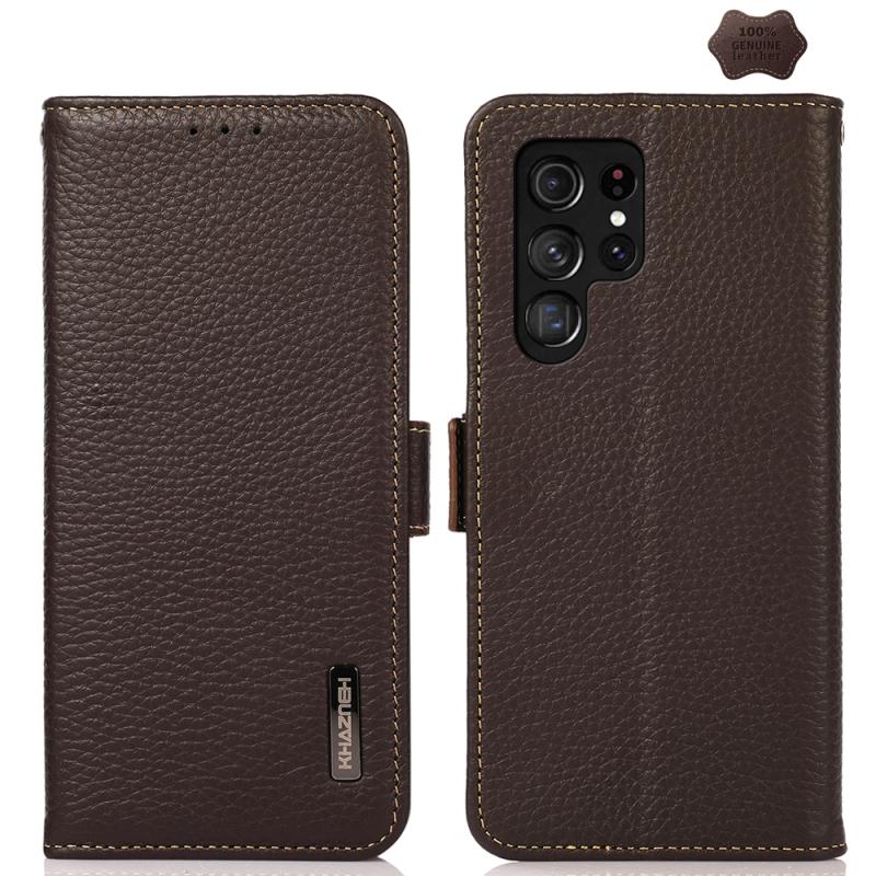 For Samsung Galaxy S24 Ultra KHAZNEH Side-Magnetic Litchi Genuine Leather RFID Phone Case(Brown)