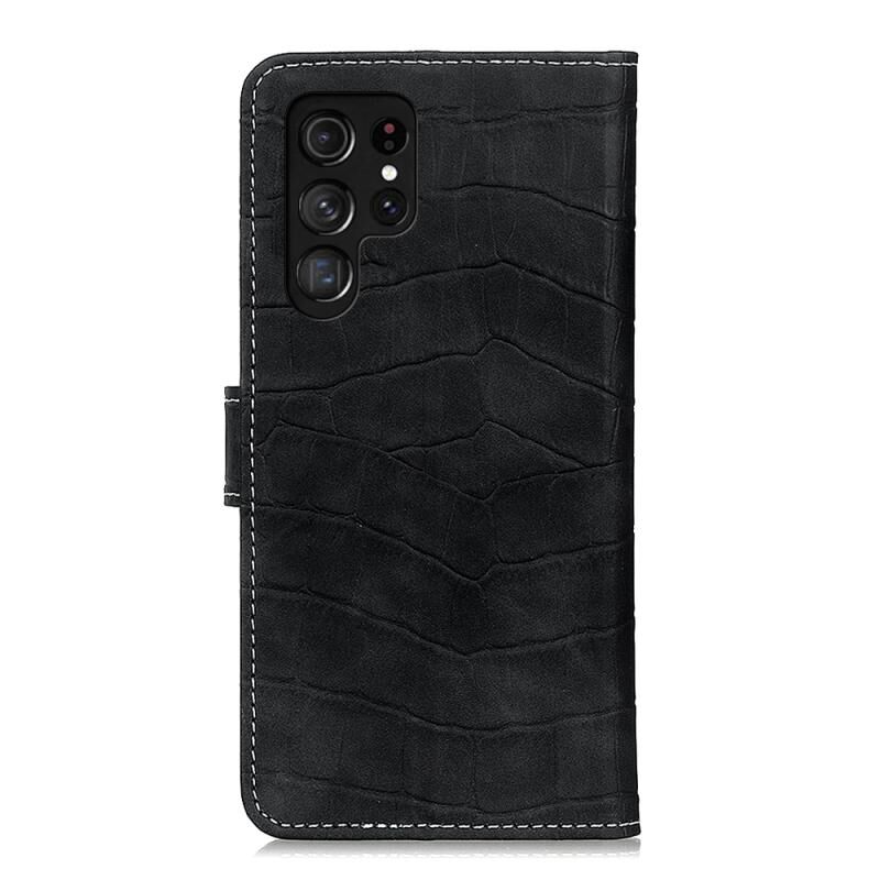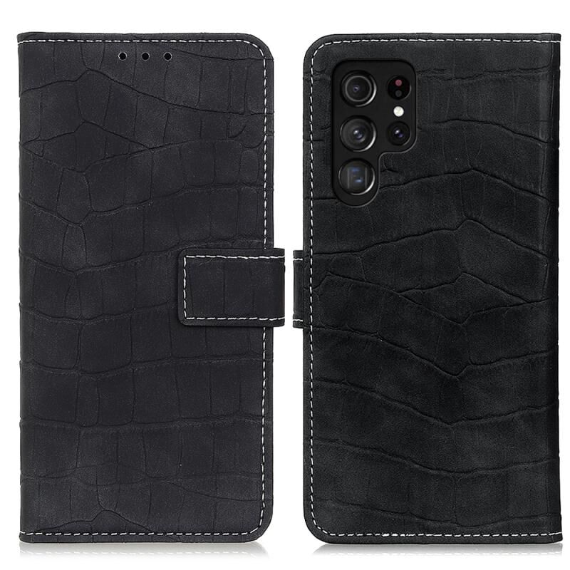 Θήκη τηλεφώνου Samsung Galaxy S24 Ultra Μαγνητική Δερμάτινη με Υφή Κροκόδειλου (Μαύρο)
