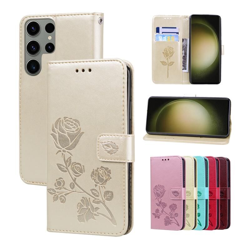 For Samsung Galaxy S24 Ultra Rose Embossed Flip PU Leather Phone Case(Gold)