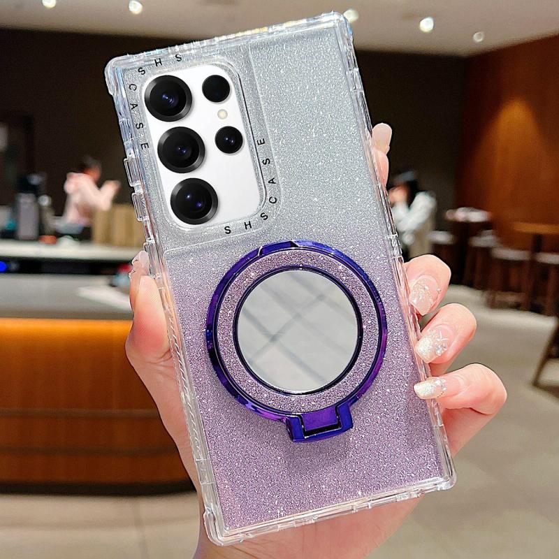 For Samsung Galaxy S24 Ultra / S25 Ultra Mirror Holder Glitterr MagSafe Phone Case(Purple)