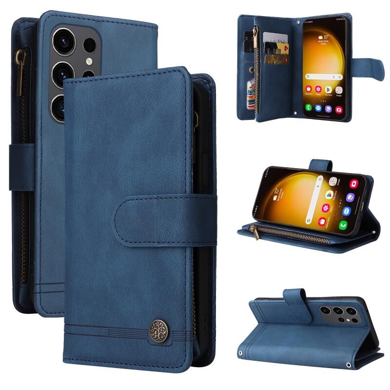 Για Samsung Galaxy S24 Ultra Skin Feel Multi-Card πορτοφόλι φερμουάρ δερμάτινη θήκη τηλεφώνου (Μπλε)