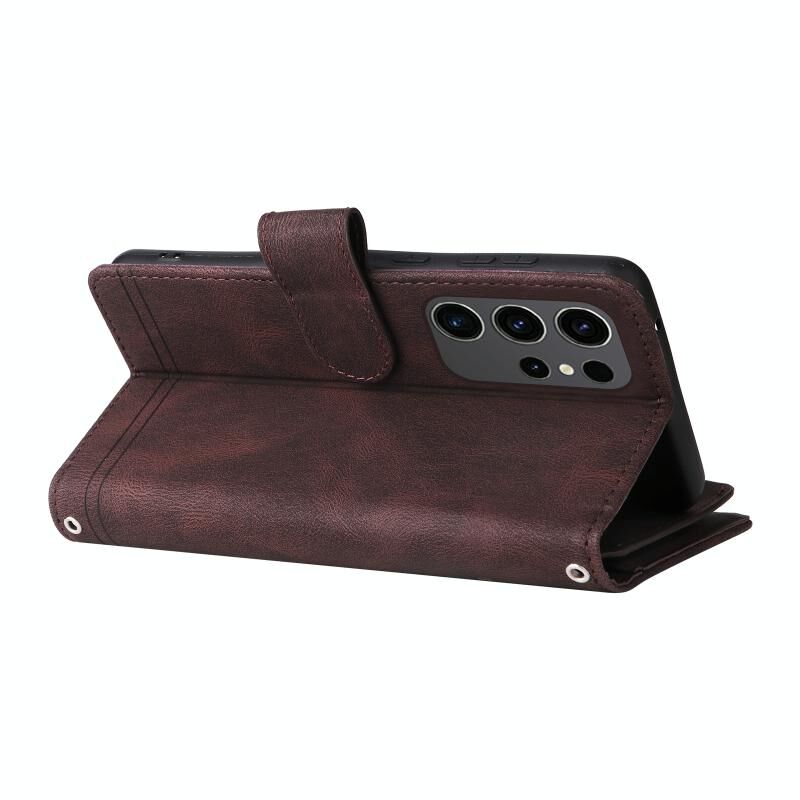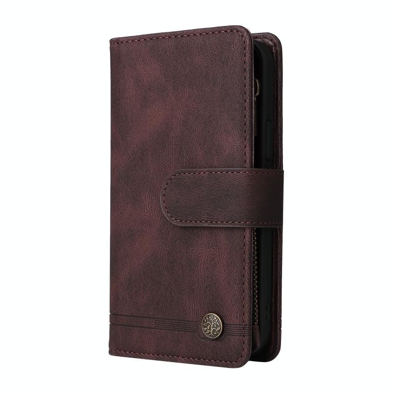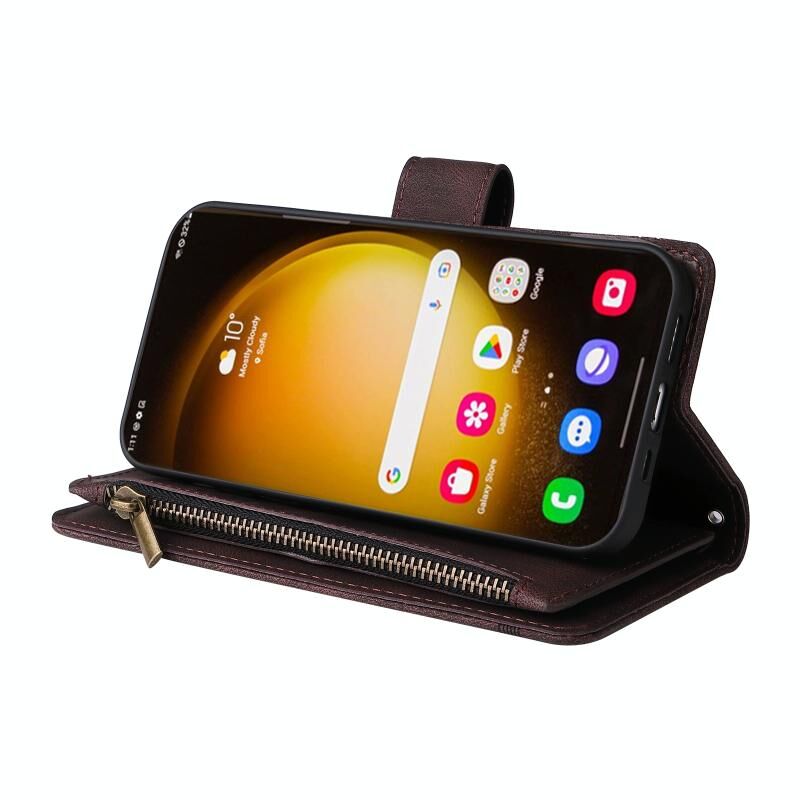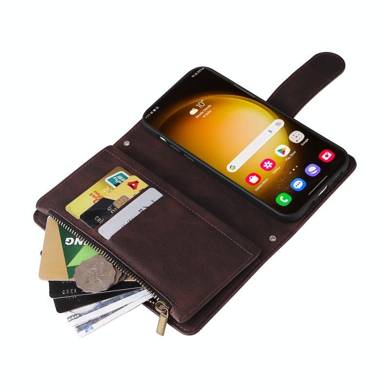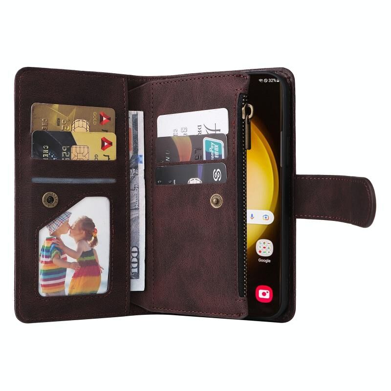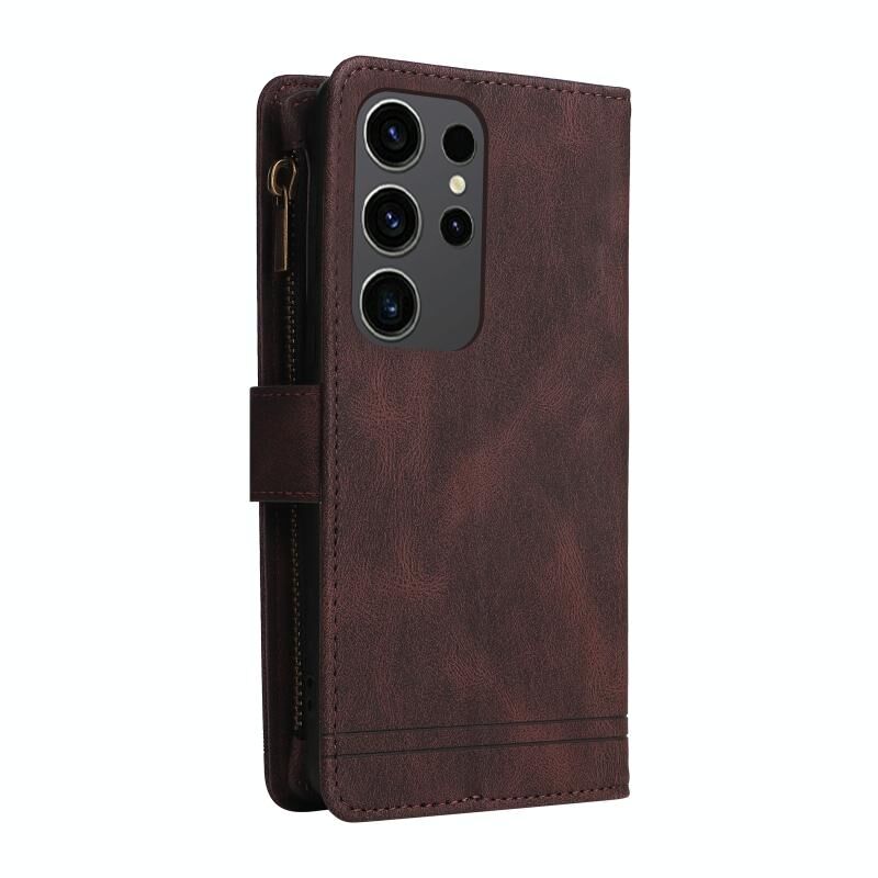 Για Samsung Galaxy S24 Ultra Skin Feel Multi-Card πορτοφόλι φερμουάρ δερμάτινη θήκη τηλεφώνου (Καφέ)