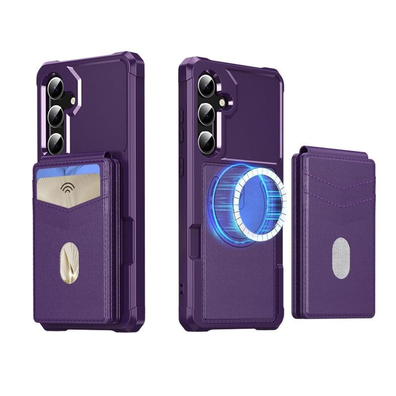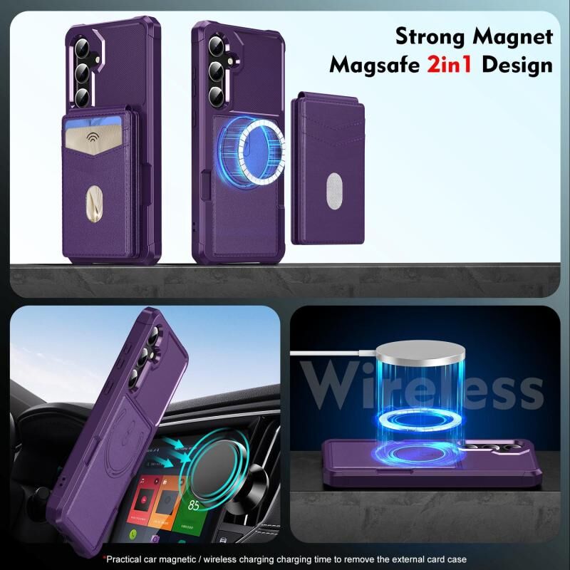 Θήκη κινητού Samsung Galaxy S25+ 5G 2-σε-1 Μαγνητικό Πορτοφόλι MagSafe Δερμάτινη Πλάτης (Μωβ)