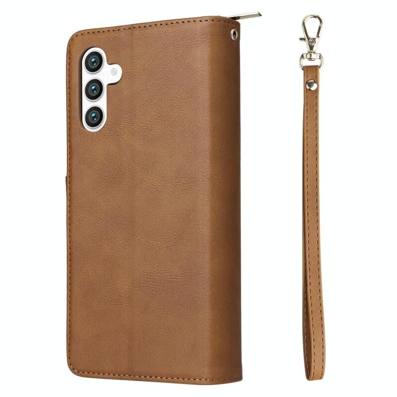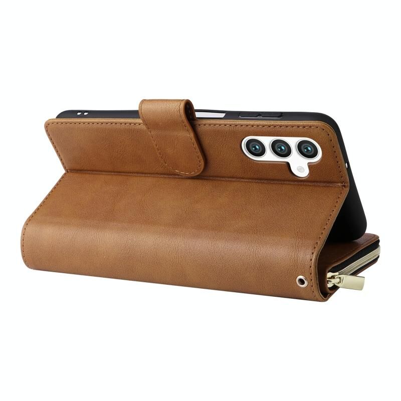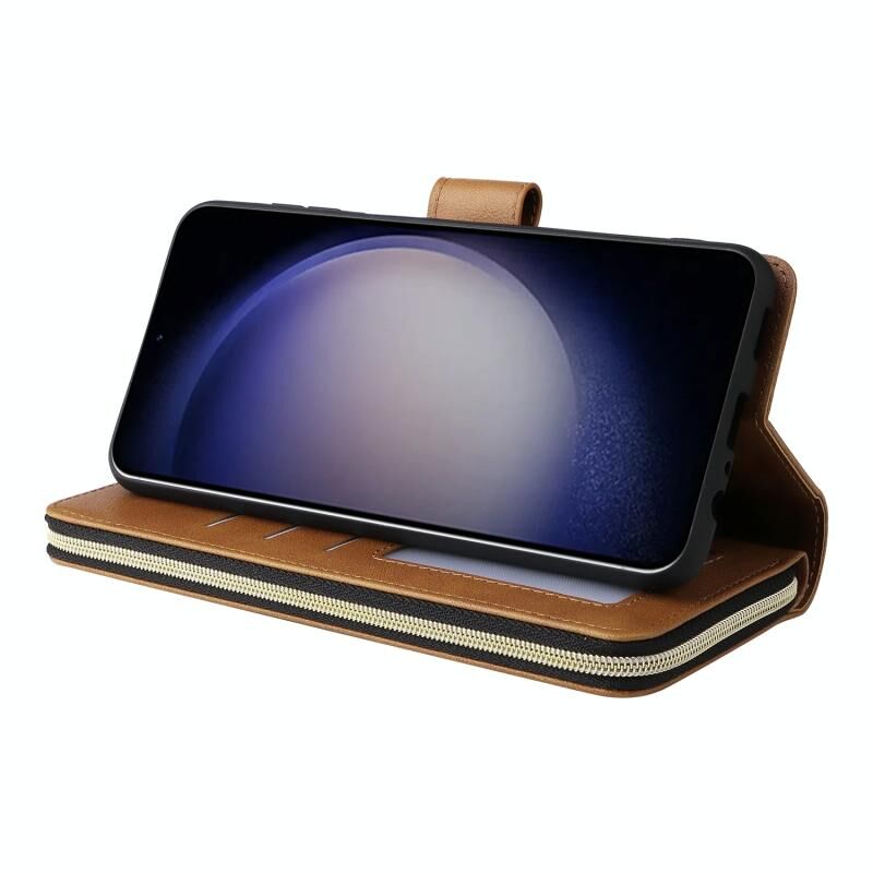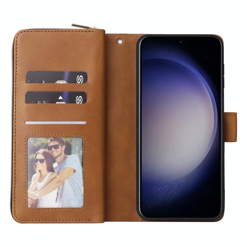 Για Samsung Galaxy S25 5G 9-Card Slots φερμουάρ τσάντα πορτοφόλι δερμάτινη θήκη τηλεφώνου (καφέ)
