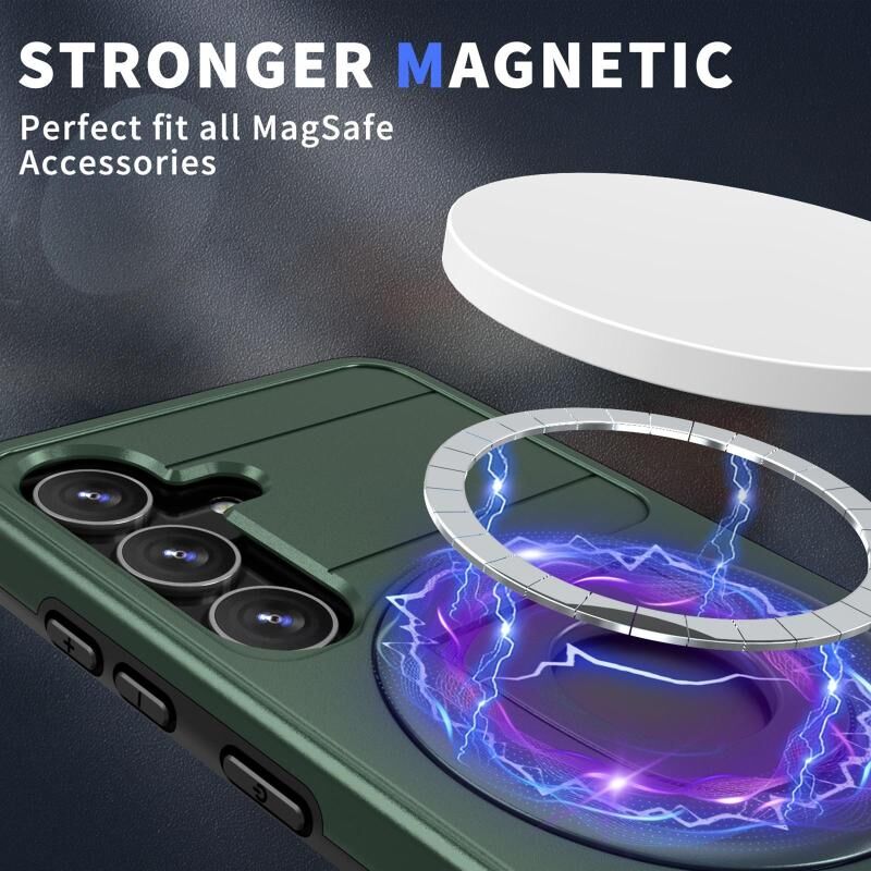 Θήκη τηλεφώνου για Samsung Galaxy S25+ 5G με ενσωματωμένο δακτύλιο MagSafe και προστασία Armor (Σκούρο πράσινο)