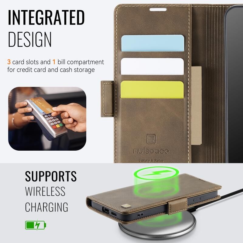 Θήκη δερμάτινη για Samsung Galaxy S25 5G AutSpace A11 με πλευρική αγκράφα, MagSafe, μαγνητική προστασία RFID (Καφέ) (AutSpace)