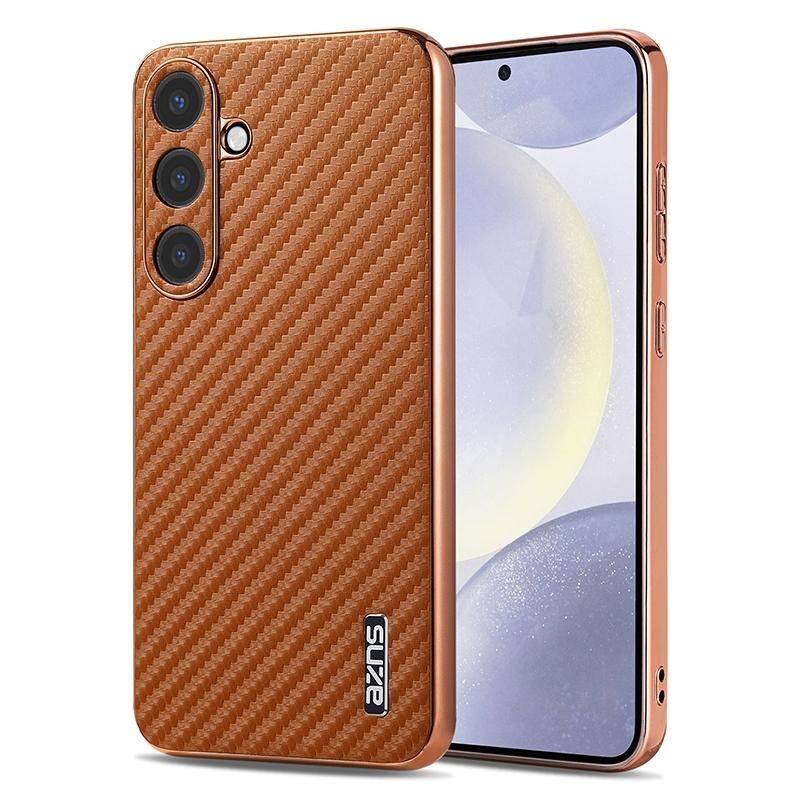 For Samsung Galaxy S25 5G AZNS Electroplated Edge Carbon Fiber Texture Phone Case(Brown) (AZNS)