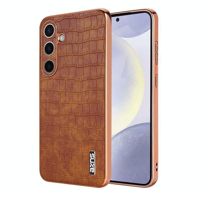 Θήκη κινητού τηλεφώνου πλήρους κάλυψης με ηλεκτρολυτικό πλαίσιο και υφή κροκόδειλου για Samsung Galaxy S25 5G AZNS (Καφέ) (AZNS)
