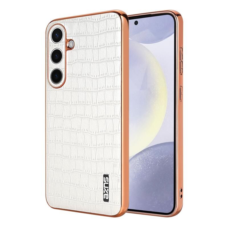 Θήκη κινητού τηλεφώνου πλήρους κάλυψης με ηλεκτρολυτικό πλαίσιο και υφή κροκόδειλου για Samsung Galaxy S25+ 5G (Μαύρο) (Λευκό)