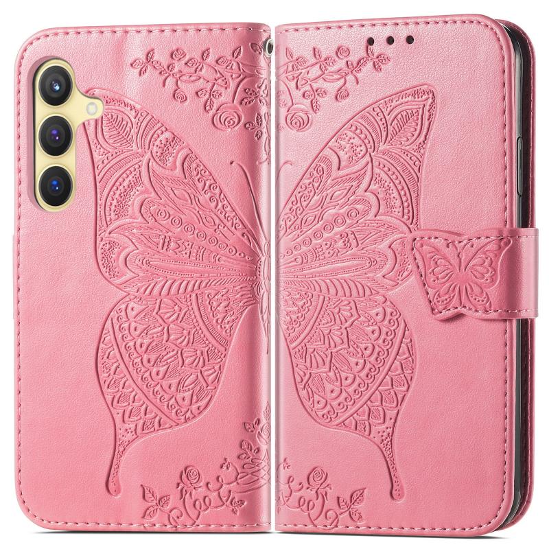 For Samsung Galaxy S25 5G Butterfly Love Flower Embossed Leather Phone Case(Pink)