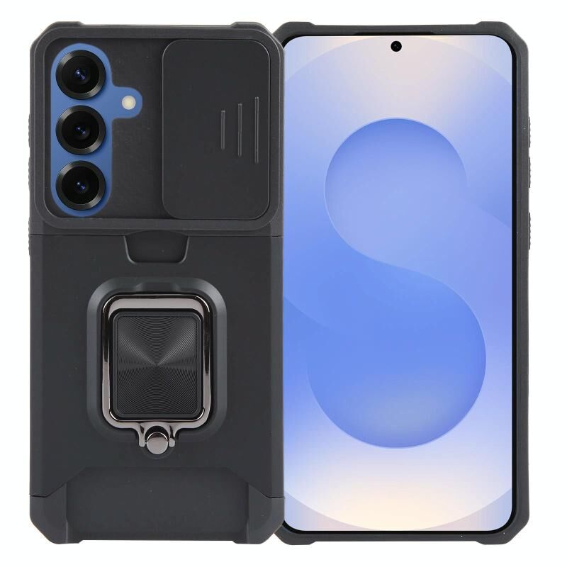Θήκη κινητού τηλεφώνου Samsung Galaxy S25 5G με προστασία κάμερας, θήκη κάρτας, υβριδική κατασκευή από PC και TPU (Μπλε)