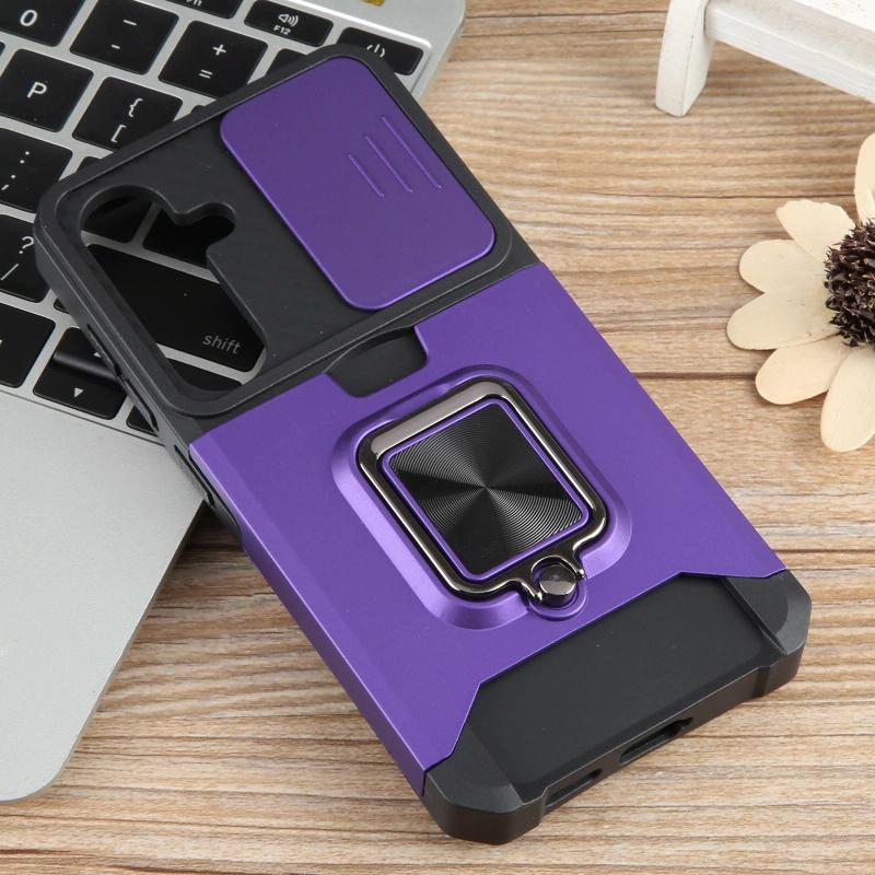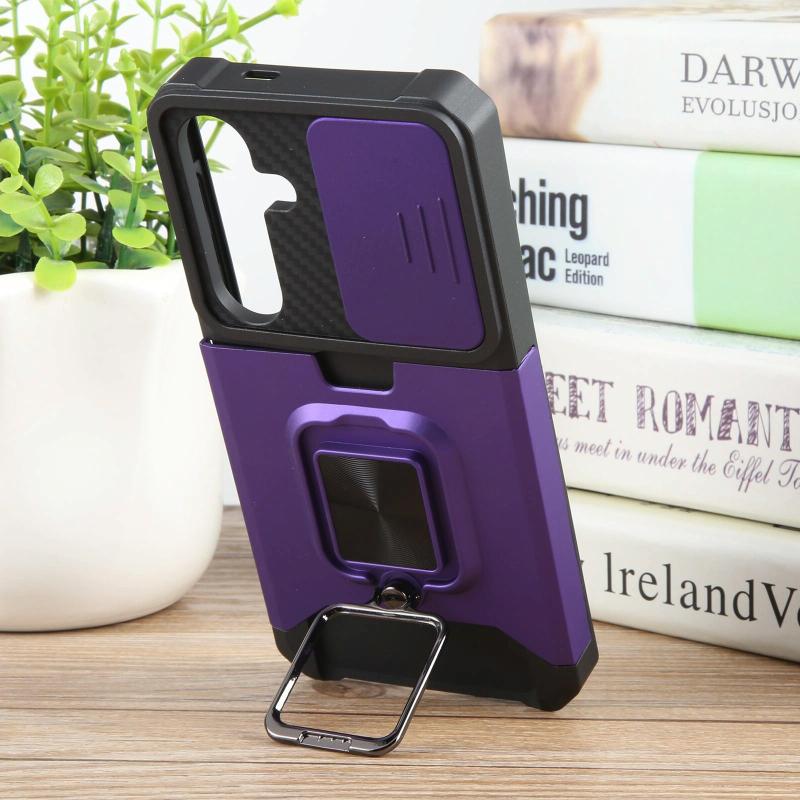 For Samsung Galaxy S25+ 5G Camera Shield Card Slot PC Hybrid TPU Phone Case(Purple)